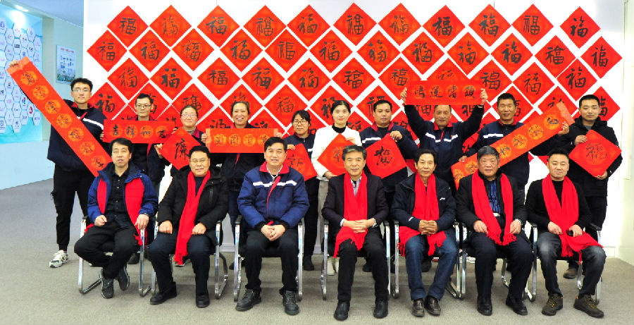 長(zhǎng)桌排開,紅紙鋪就,一時(shí)翰墨飄香。一句句吉祥佳語,一幅幅精美書作,飽含濃濃年味,盡展書法藝術(shù)的魅力?!伴L(zhǎng)培松竹留清韻,惟賴詩書發(fā)異香。”展現(xiàn)了氨綸人傳承文化知識(shí)的追求、對(duì)高潔品格的向往;“虎步奔騰開勝景,春風(fēng)浩蕩展宏圖?!憋柡藢?duì)公司發(fā)展萬象更新、蒸蒸日上的祝福;“人和政善千家福,國(guó)富民強(qiáng)四海春?!奔耐辛嗽邳h的正確領(lǐng)導(dǎo)下,人們對(duì)美好生活的愿景。排隊(duì)領(lǐng)春聯(lián)領(lǐng)福字的職工拿到這些寓意著美好吉祥的春聯(lián),臉上掛滿了笑容,紛紛拍照留念。歡快的音樂,喜慶的春聯(lián),火紅的燈籠交相輝映,現(xiàn)場(chǎng)一片歡聲笑語,熱鬧非凡。