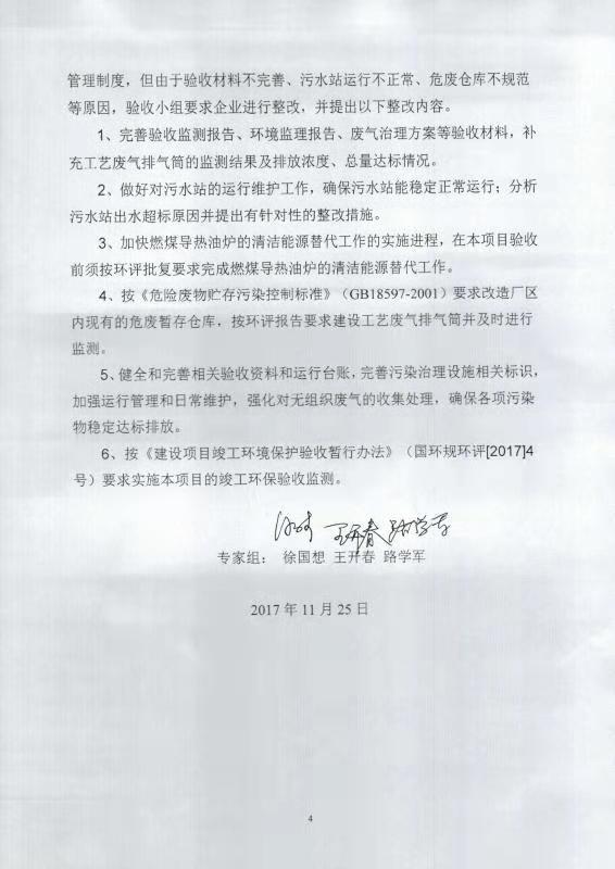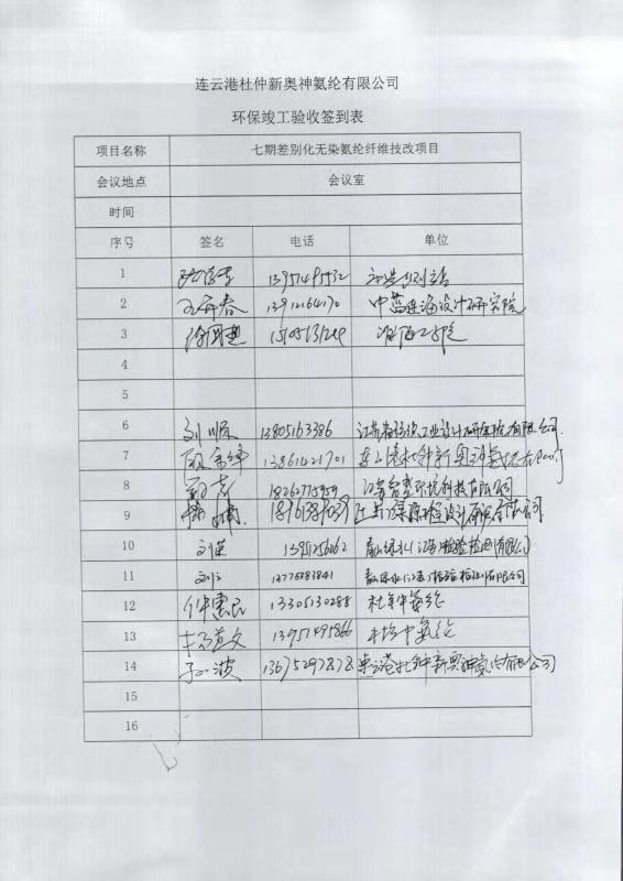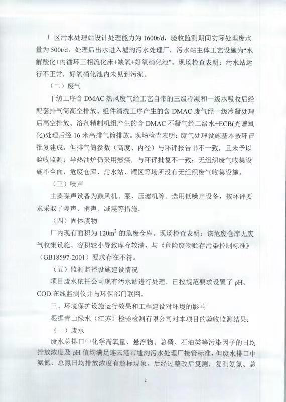 七期差別化無染氨綸纖維技改項目竣工環(huán)境保護(hù)自主驗收意見