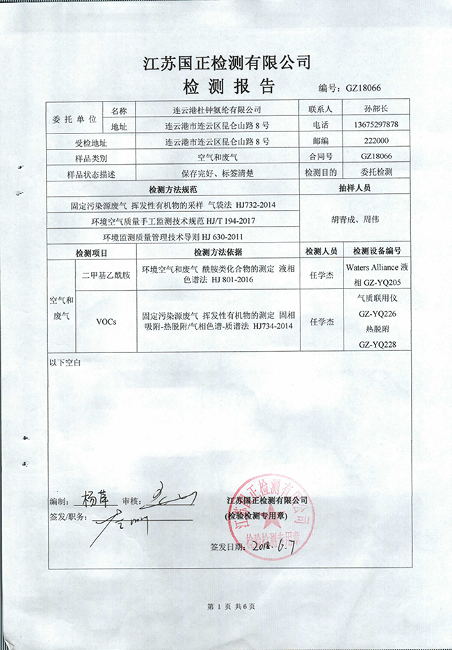 2018年10月29日環(huán)境檢測報告