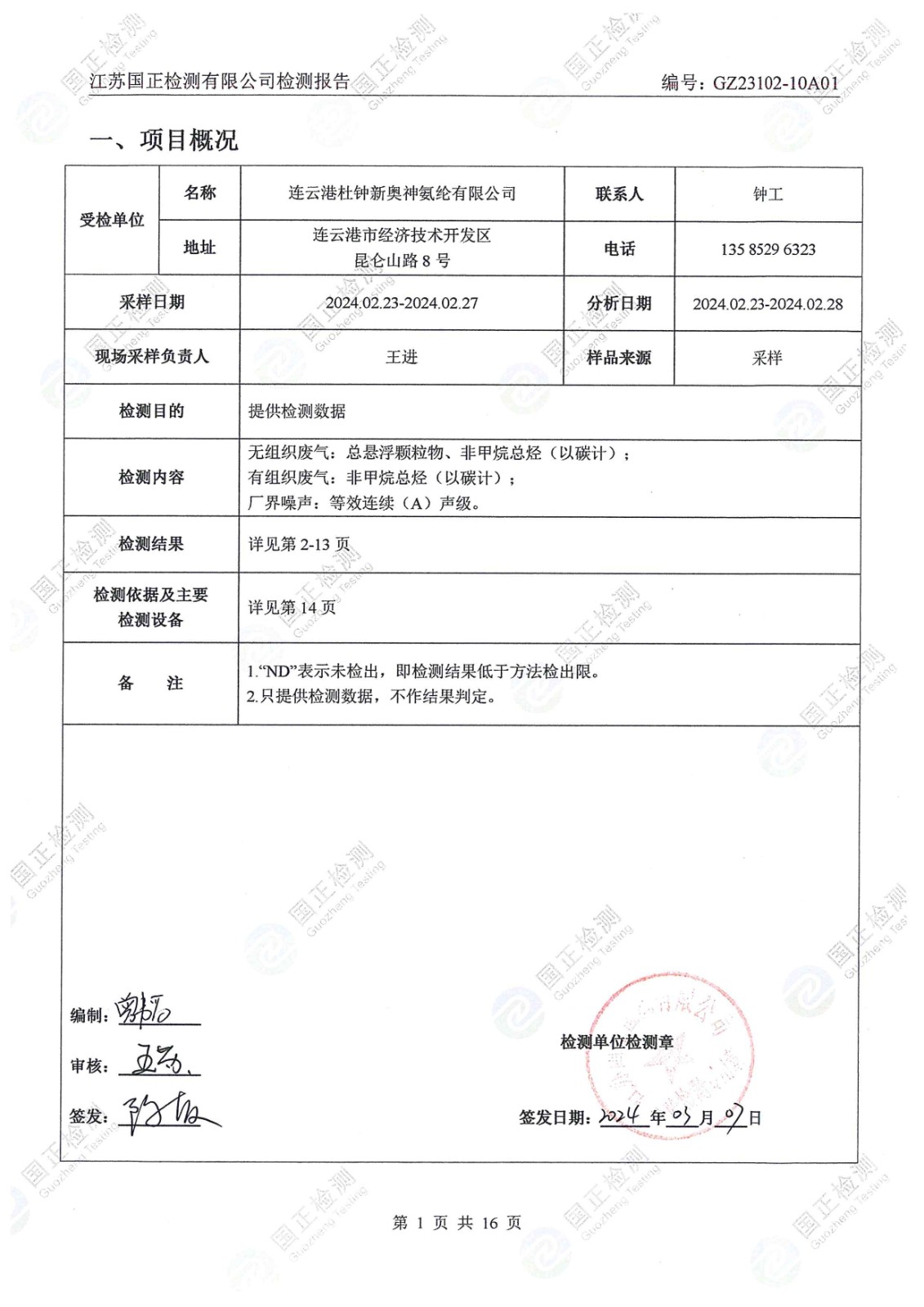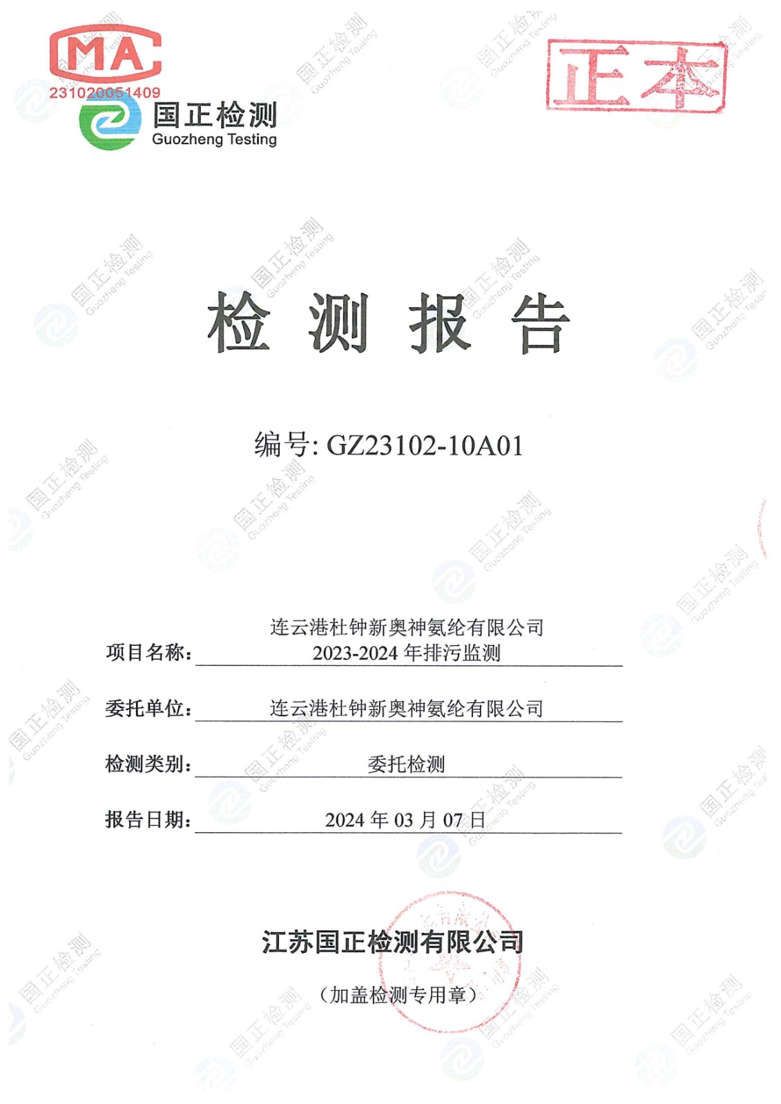 杜鐘氨綸2月檢測 23102-10A01杜鐘年排污檢測報(bào)告