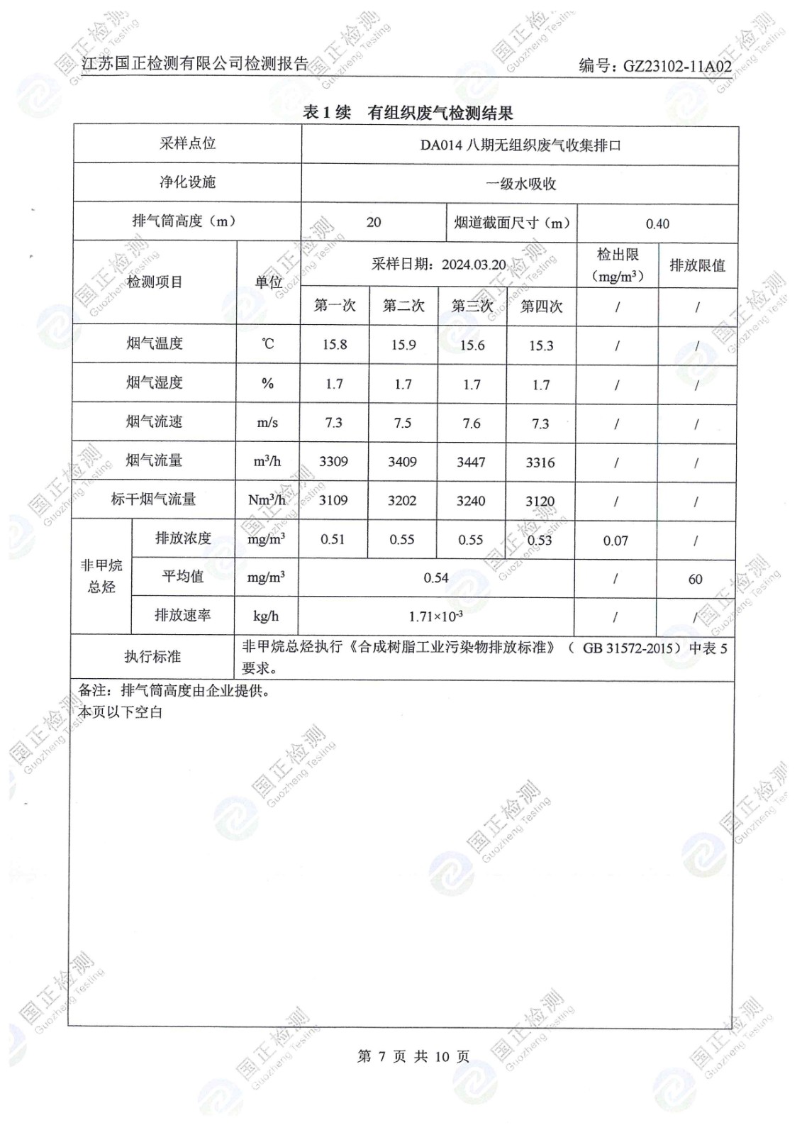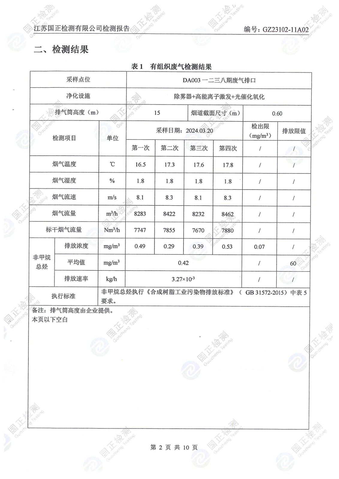 杜鐘氨綸2024年3月檢測杜鐘年排污檢測報告