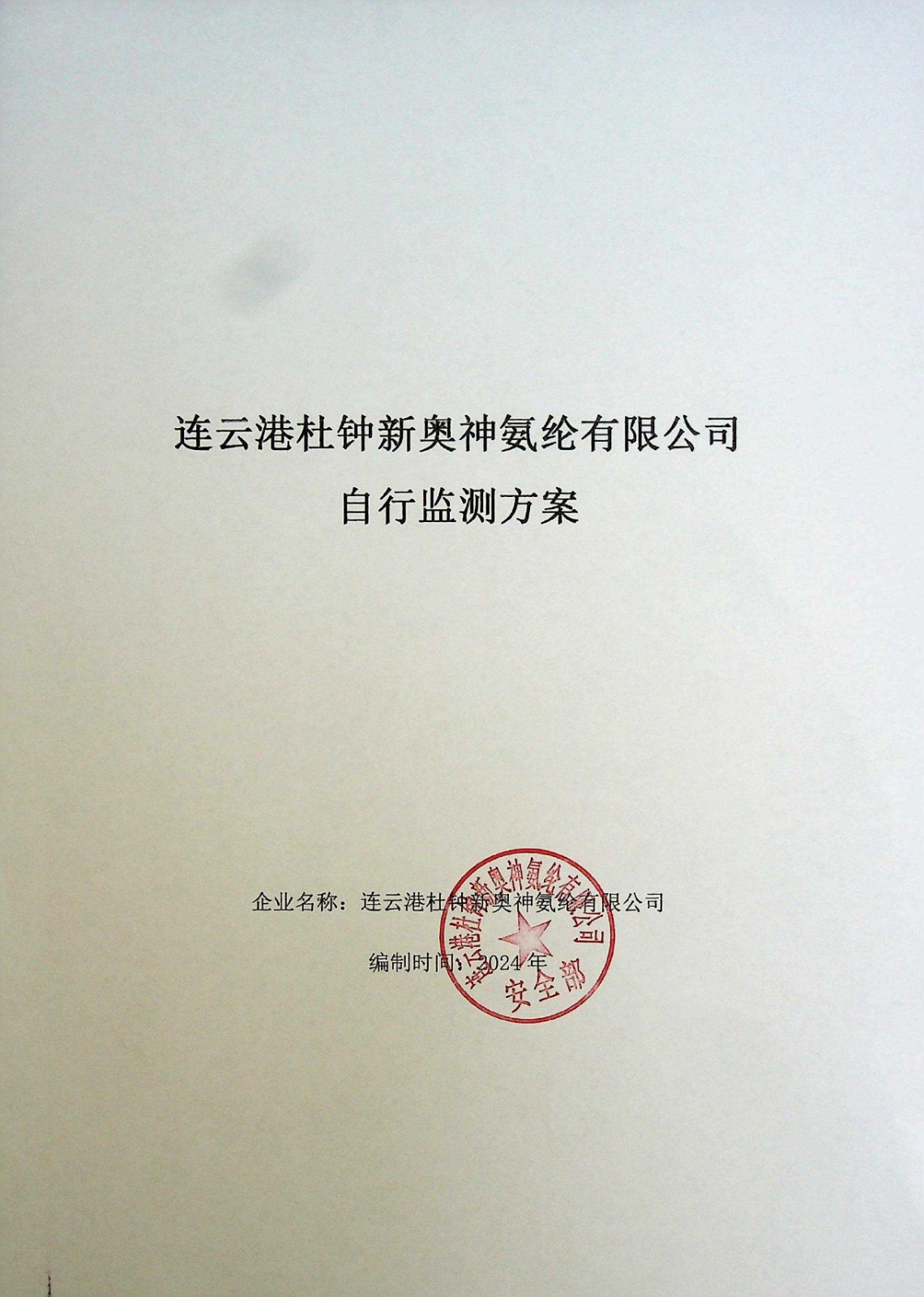 連云港杜鐘新奧神氨綸有限公司自行監(jiān)測方案