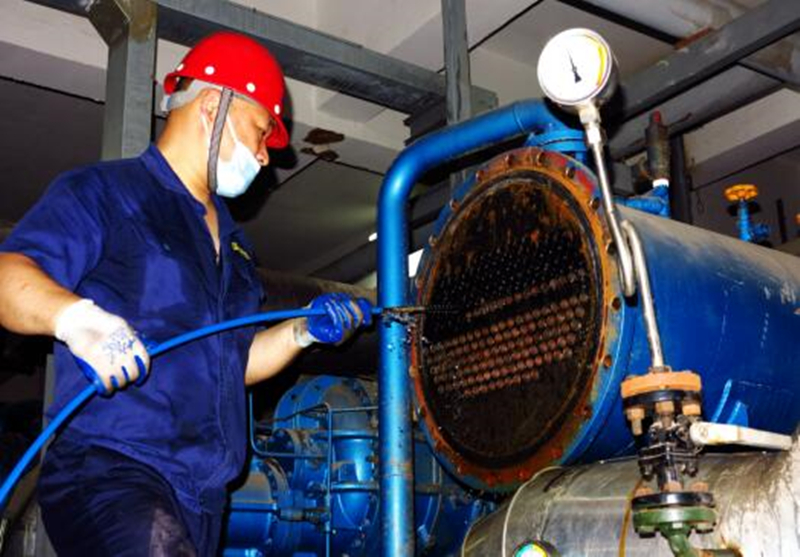 自主性:疫情期間,公用工程部自主維修小組根據(jù)八期冷媒機(jī)組運行狀況,判斷急需清洗冷凝器和油冷器的情況,緊急申請采購管道清洗設(shè)備,在無技術(shù)無培訓(xùn)的情況,攻堅克難,自加壓力,在較短時間內(nèi)熟悉和掌握清洗及使用技巧和方法,實現(xiàn)當(dāng)天內(nèi)完成冷凝器端蓋拆卸、換熱器管束清洗和復(fù)位調(diào)機(jī)工作,保證了生產(chǎn)運行的連續(xù)性。