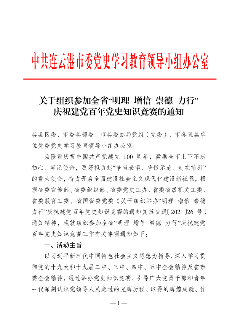 關(guān)于組織參加全省“明理 增信 崇德 力行” 慶祝建黨百年黨史知識(shí)競賽的通知